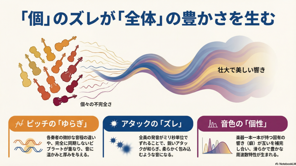オーケストラのバイオリンセクションも様々な“ゆらぎ”で重厚な響きを実現