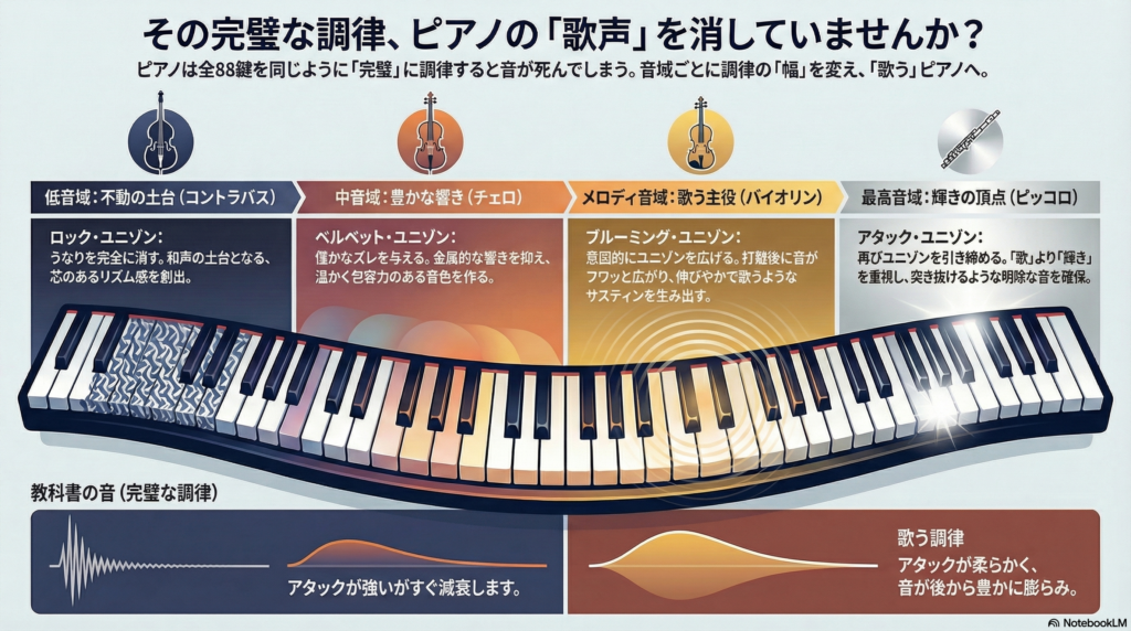 私の調律はピアノを歌わせます。(音域で変化させるブルーミングユニゾン)
