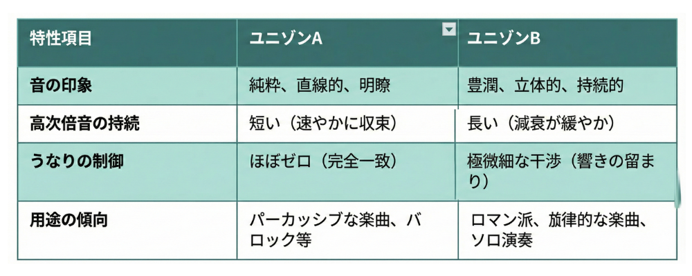 ユニゾンA(デッドユニゾン):純粋性と明快な減衰