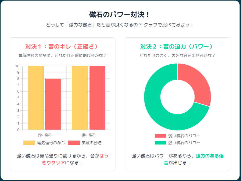 高級スピーカーを例に『磁石で音が良くなる』仕組みのイメージ」